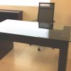 Escritorio ejecutivo con bases en fórmica y cubierta de vidrio.